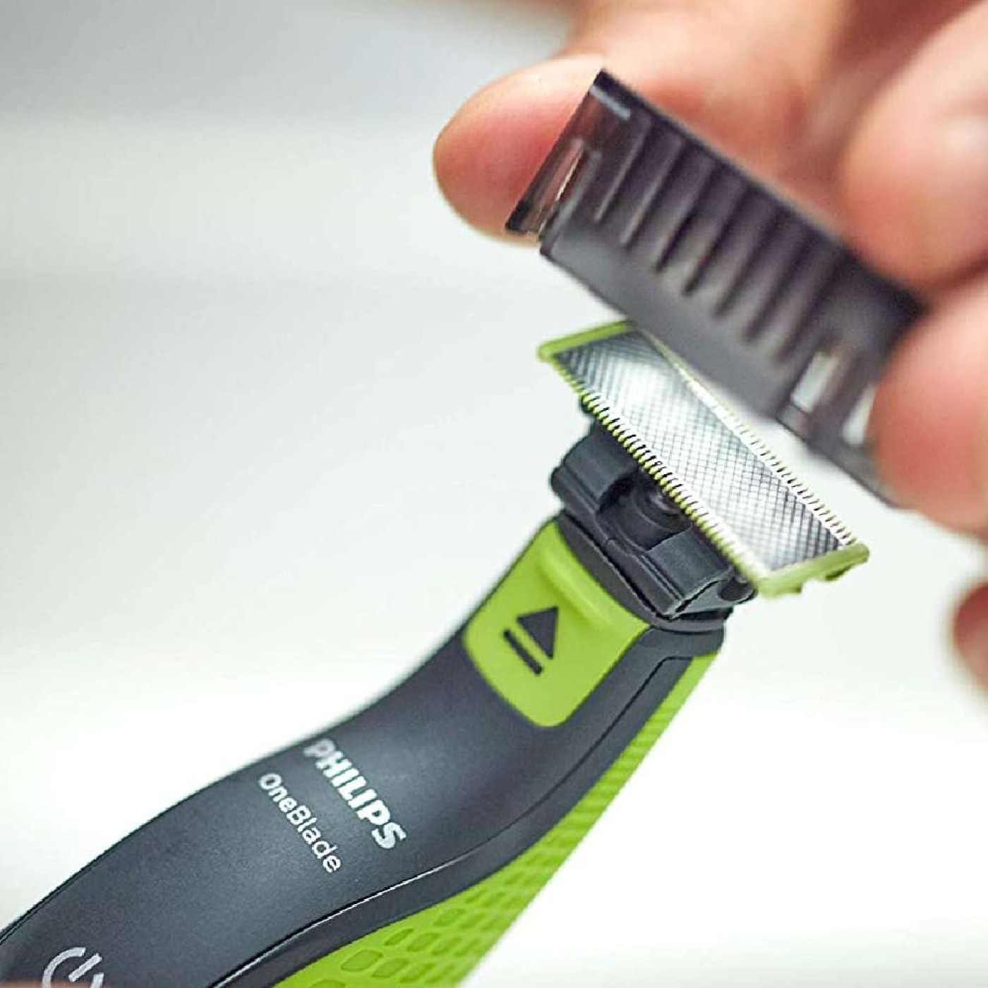 » Para proteger sua pele, o OneBlade não barbeia tão rente - mesmo em áreas sensíveis. Use no sentido contrário ao pelo, com a lâmina em posição reta sobre o rosto.