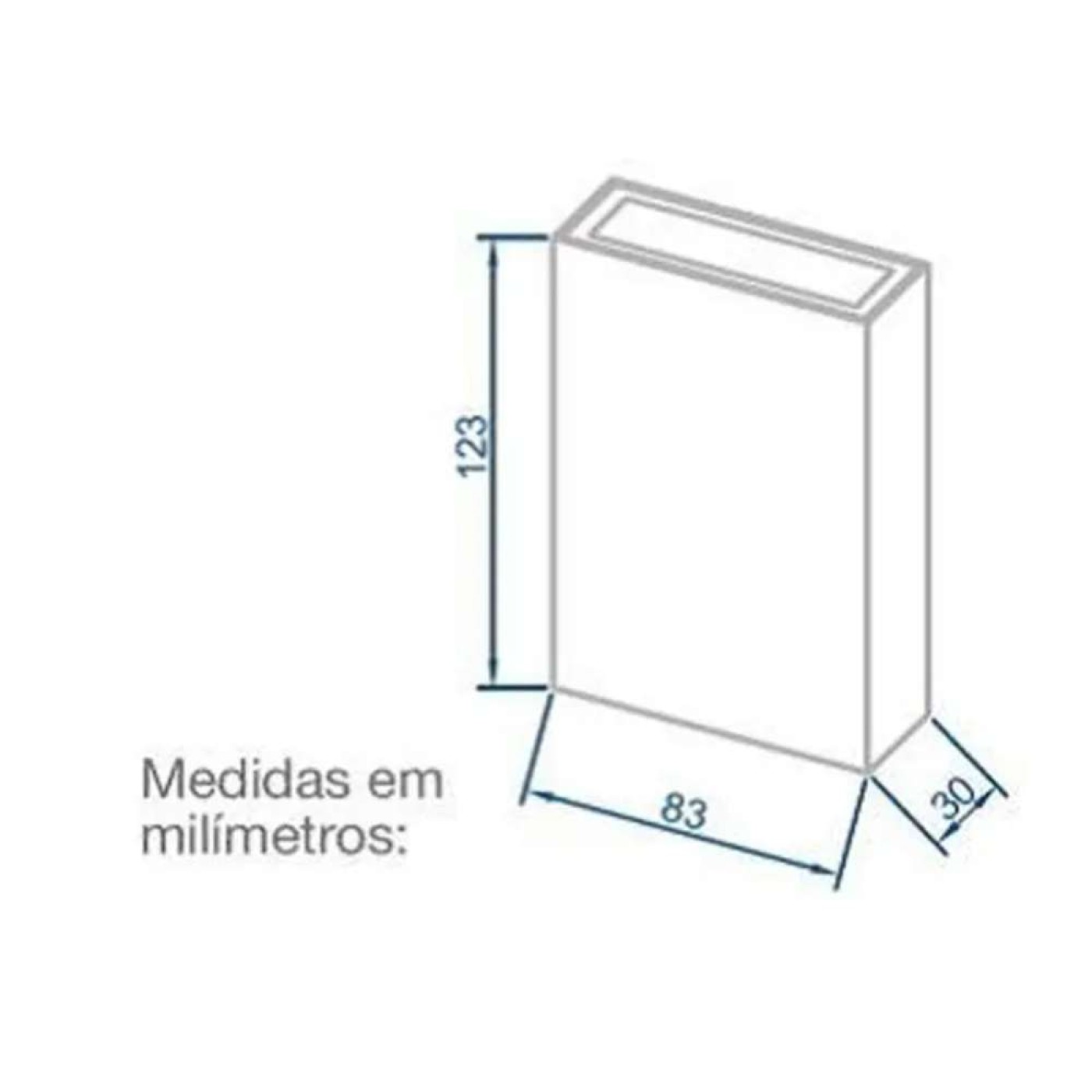 - Dimensões: 123 x 83 x 30 mm;