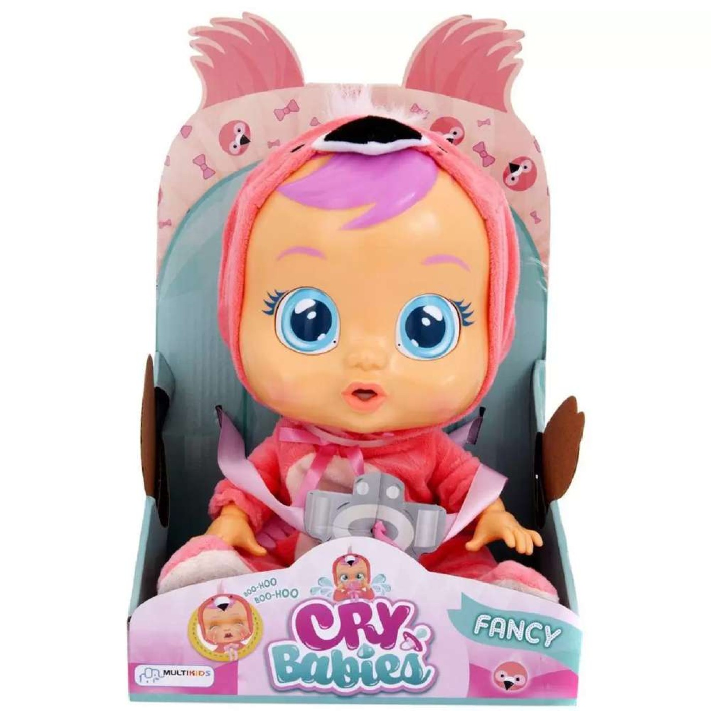 » Essa boneca super fofa chora lágrimas de verdade e emite sons iguais ao de um bebê de verdade! Basta tirar a chupeta da boca dela que ela chora cada vez mais e não para até ganhá-la de volta. Brincar de boneca irá ficar muito mais divertido com a Flamy da Multikids! Alimentado por 2 pilhas AAA (inclusas)