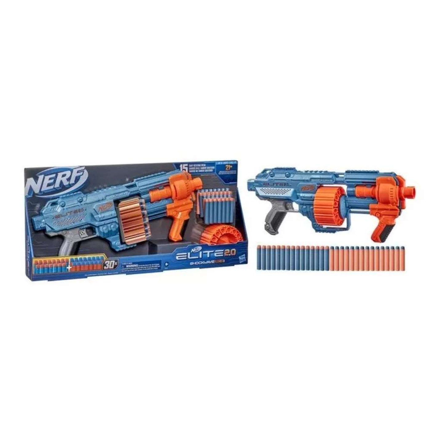 Lançador Nerf Elite 2.0 Shockwave RD15 Hasbro - E9531Experimente a suprema precisão e potência desse lançador de dardos Nerf. Inicie uma intensa competição com seus amigos. Pratique sua pontaria para futuras incríveis batalhas com o Lançador de Dardos Nerf . Lançador completo Acompanha 30 dardos Nerf que podem chegar a até 25m/s com qualidade e potência Nerf Elite 2.0.