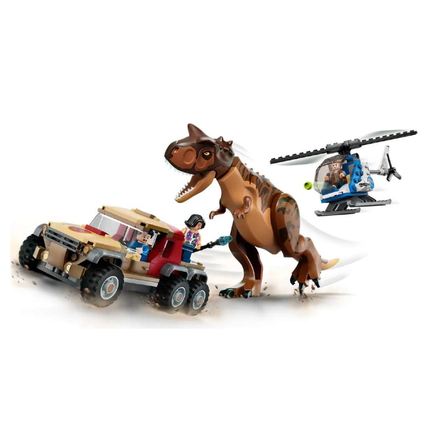 » Os jovens podem desfrutar de horas de diversão criativa com este conjunto de brinquedos LEGO® Jurassic World Carnotaurus Dinosaur Chase (76941), com uma figura de Carnotaurus posível, helicóptero e caminhonete montáveis. O brinquedo do helicóptero tem uma cabine de minifigura, uma hélice giratória e um atirador de vigas para jogos de ação. As 3 minifiguras de personagens populares do Jurassic World podem caber no caminhão, que tem uma cabine com teto basculante para fácil acesso, além de uma caçamba de carga.