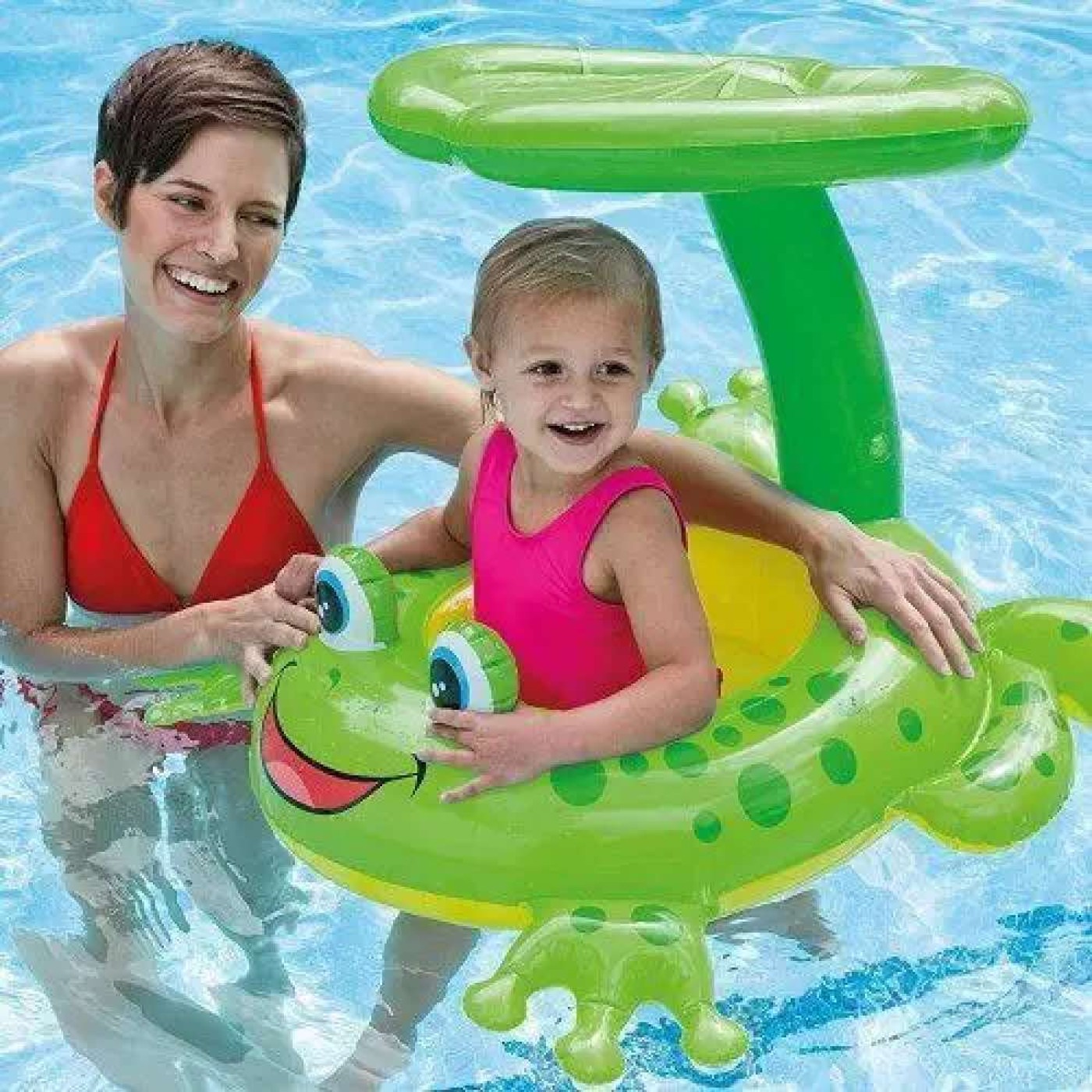 » Boia Bote Sapinho com entrada para as perninhas e cobertura que protege do sol. Agora os dias de verão ficarão mais animados com esse lindo e colorido bote que irá fazer a diversão da garotada nesse verão. Pensado especialmente para segurança dos pequenos em piscinas pois possui abertura para as perninhas da criança e uma cobertura para proteção solar. Deixando os momentos entre pais e filhos mais alegres e divertidos. É sempre bom ter um adulto supervisionando a criança.