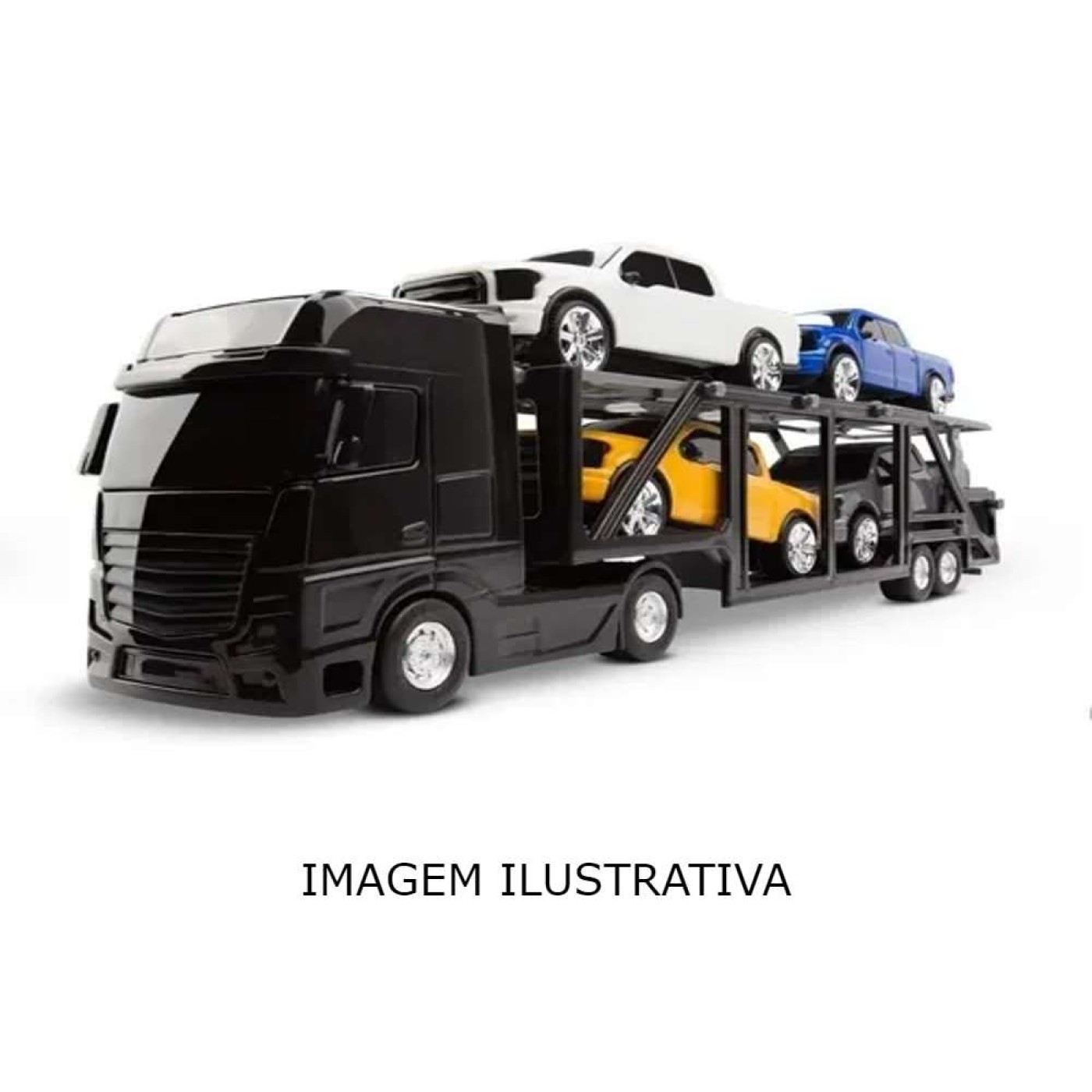 A Cegonheira Roma Petroleum acompanha 4 Pick-Ups, com calotas metalizadas. Possui sistema de trava na rampa superior que desce para carregar e descarregar.