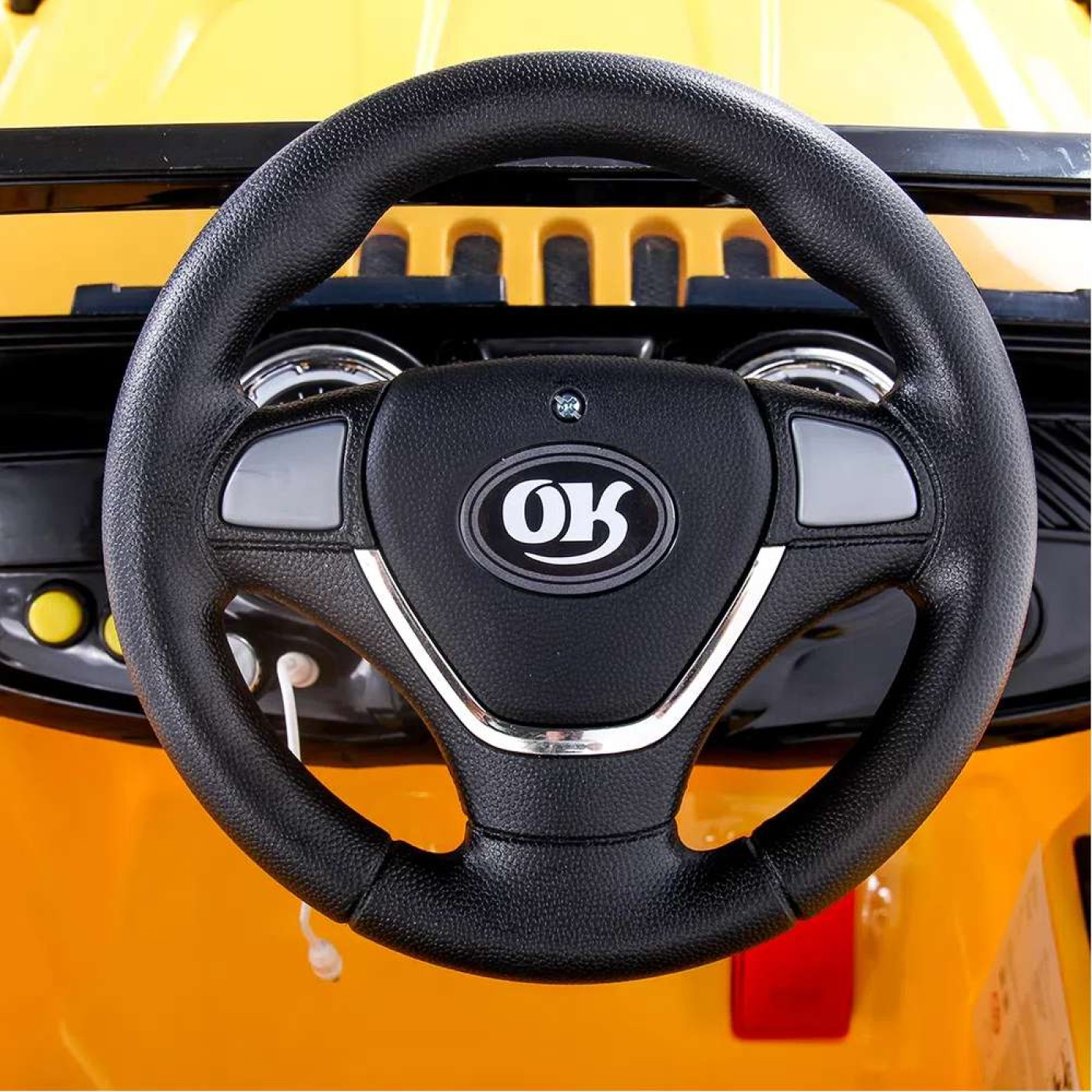 » Botões: liga/ desliga, música, controle de volume, buzina