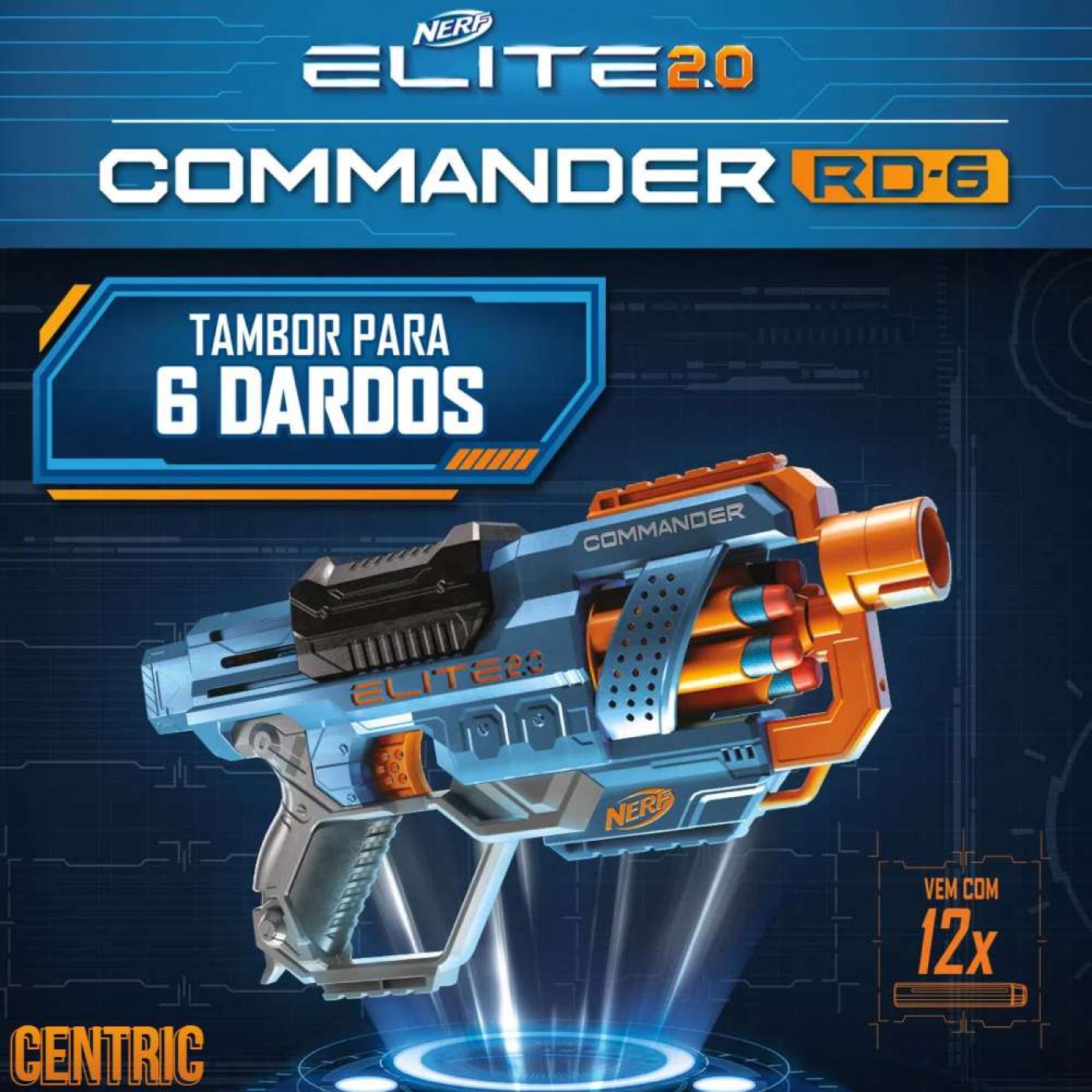 A aventura sobe de nível com os lançadores Nerf Elite 2.0, que apresentam recursos de personalização integrados para que se possa utilizar acessórios e sair na frente na aventura Nerf. É hora de montar seu próprio lançador Elite 2.0 para otimizar sua estratégia de jogo e trazer desempenho tático e flexibilidade a todas as aventuras! O lançador Nerf Elite 2.0 Commander RD-6 possui 3 trilhos táticos, encaixe para tubo frontal e encaixe para apoio para personalizar o lançador nas aventuras Nerf. O lançador possui um tambor giratório para 6 dardos, sendo possível lançar um dardo por vez ou em sequência rápida. Tubo frontal e apoio não incluídos. Inclui 12 dardos oficiais Nerf - o suficiente para carregar completamente o tambor e 6 dardos para se manter nas proximidades para recargas. Óculos recomendados (não incluídos). Não requer pilhas. Nerf e todas as propriedades relacionadas são marcas registradas da Hasbro.