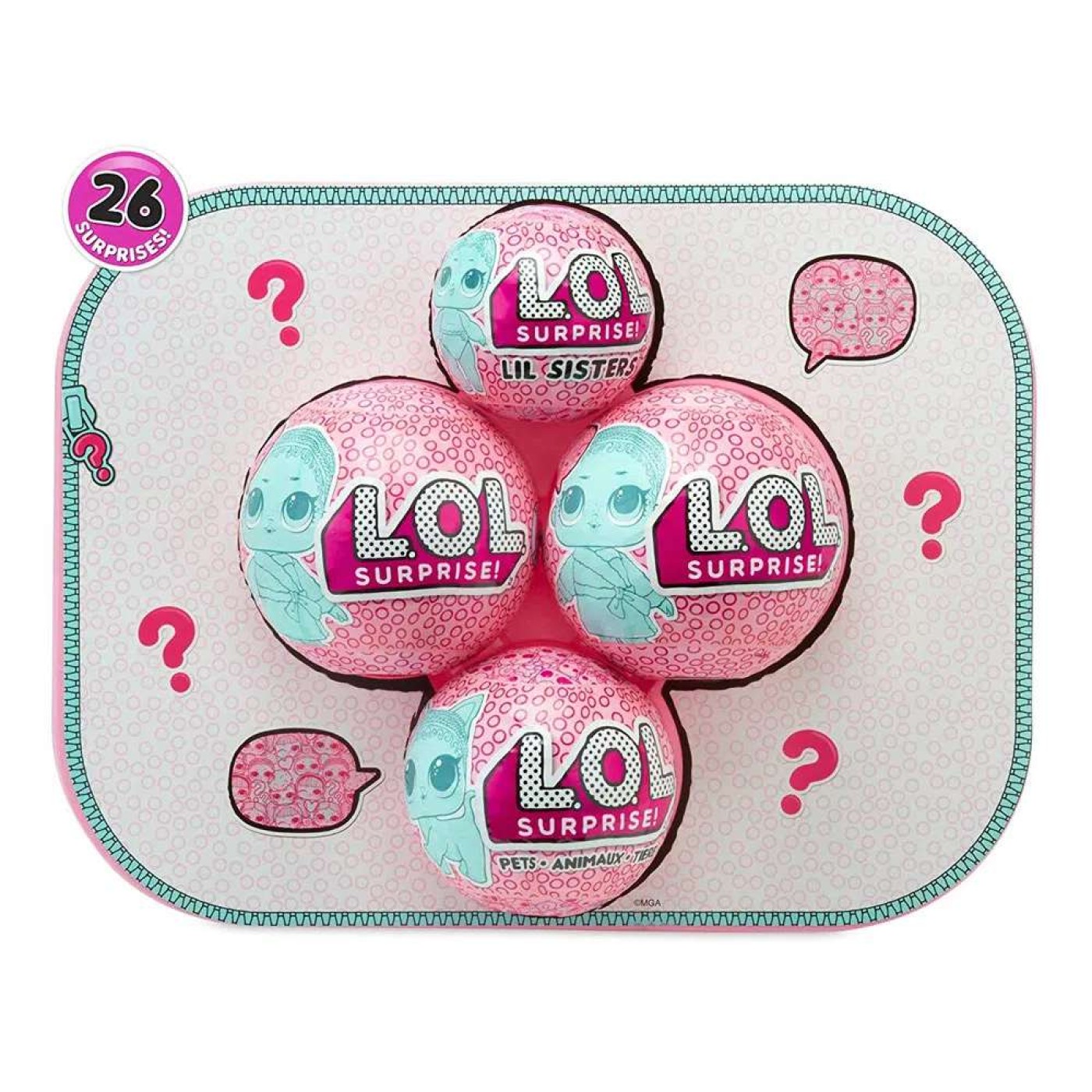 As Bonecas Surpresas LOL estavam em uma missão secreta quando seu pet desapareceu! Encontre as pistas surpresas em toda a série de espionagem para ajudar a encontrar seu animal de estimação! Descubra as 60 surpresas nunca vistas antes nas LOL. Surpreenda-se com bonecas e acessórios exclusivos. A LOL Bigger Surprise inclui: 1 lua, 26 acessórios, 6 cápsulas, 18 perucas, 6 adesivos, 2 LOL Tots com as bolsas em formato de bola, 1 LOL Sister com o chaveiro em formato de bola, 1 LOL Pet com o recipiente de areia e 4 mensagens secretas.