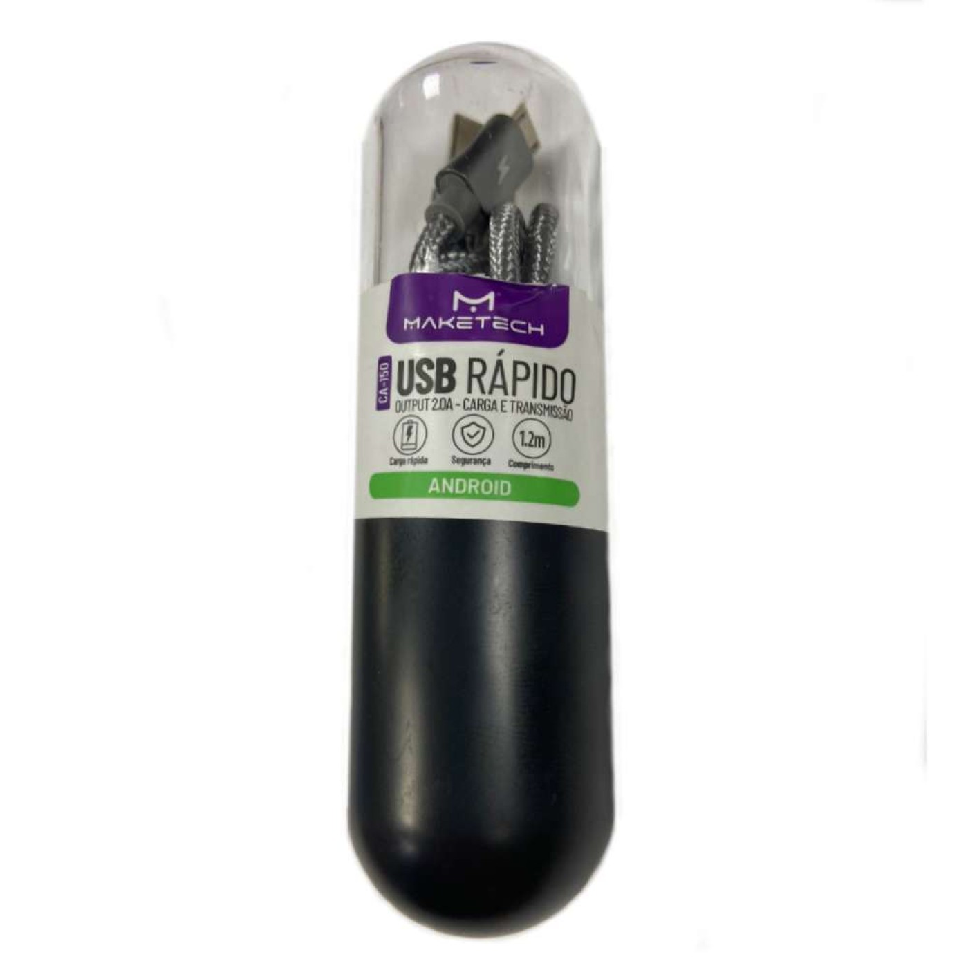 Cabo carregador turbo 2.0A 1.2 metros para Android V8 Maketech CA-150