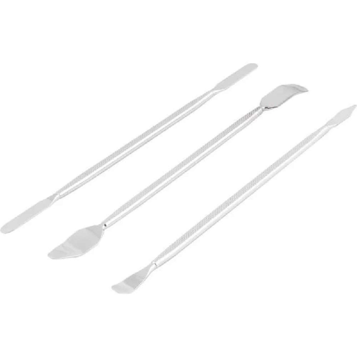 Composto por três diferentes modelos de espátulas com seis diferentes pontas de utilização. Possui ranhuras no corpo para maior segurança no uso.