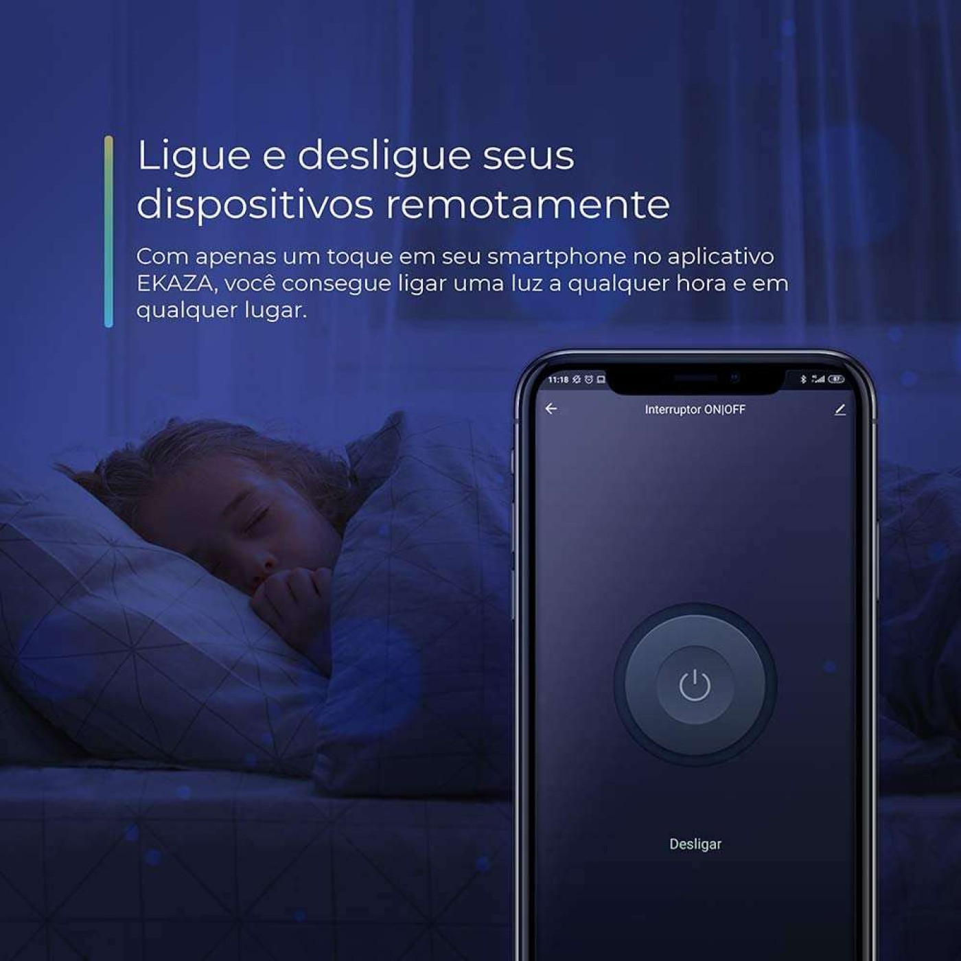 Ligue e desligue as luzes com apenas um toque em seu smartphone de qualquer lugar e a qualquer hora.