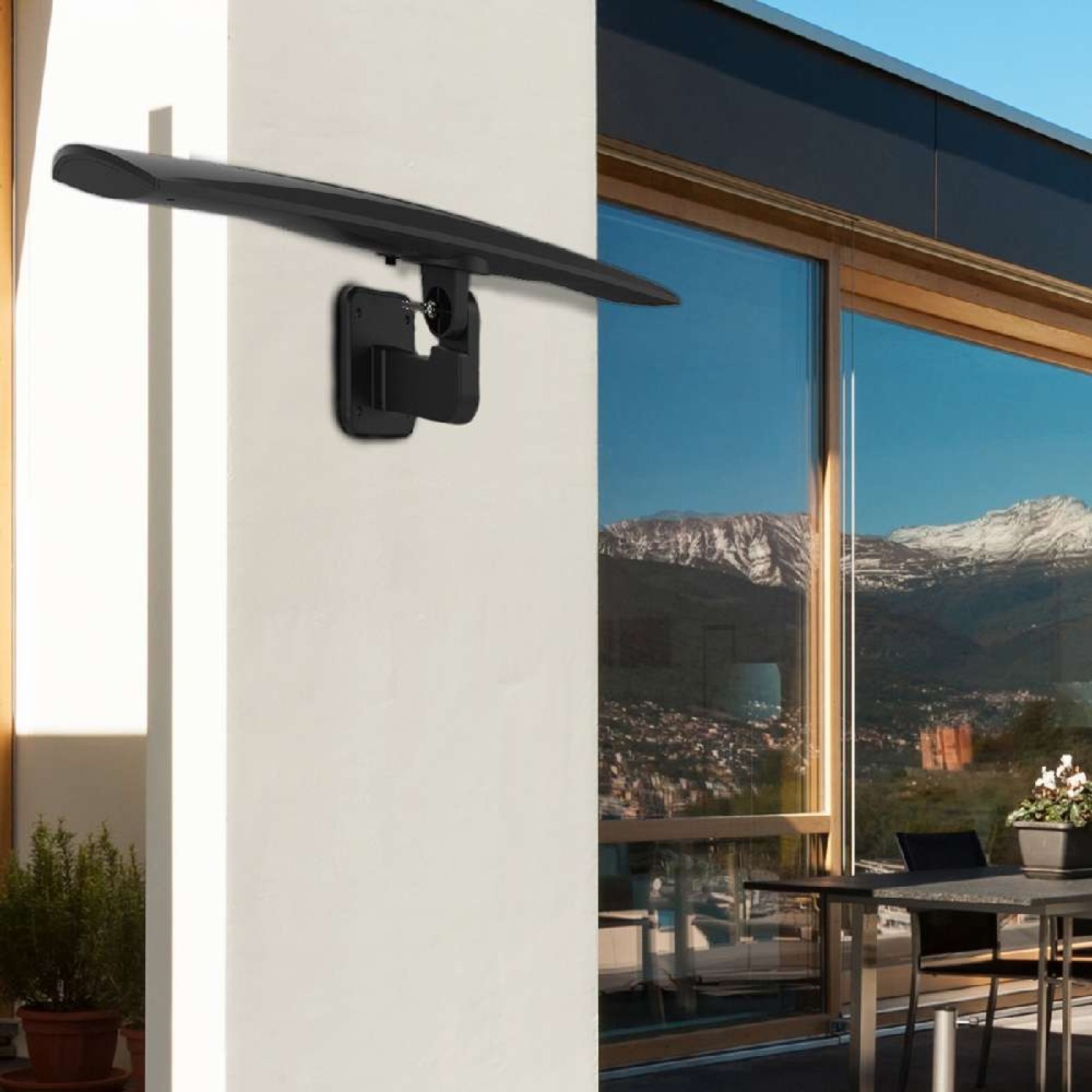 Pode ser instalada em ambientes internos e externos. Possui tecnologia para sinal digital e analógico aliado a qualidade de som e imagem HD. Alto desempenho, ótima recepção com Extra Boost e ganho de 10 dB. Alcance de até 70 km do transmissor e cabo de 10 metros. Possui tecnologia Clearstream (Sinal livre de ruídos).