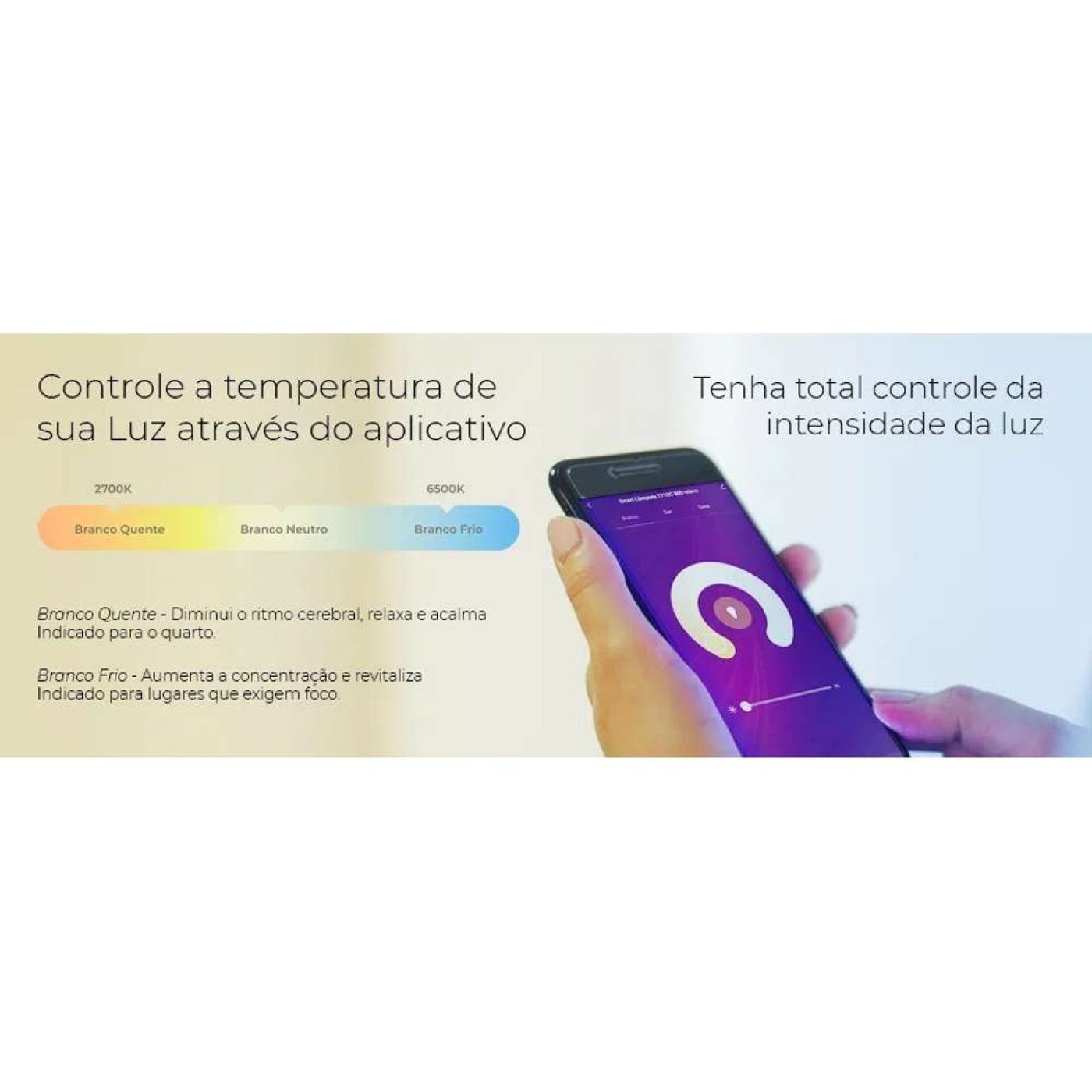 Alto brilho 1050 lúmens | Totalmente ajustável entre frio e quentes | Controle remoto 24/7 via smartphone | 8 anos de vida útil | Funciona com Alexa e Google Assistente.