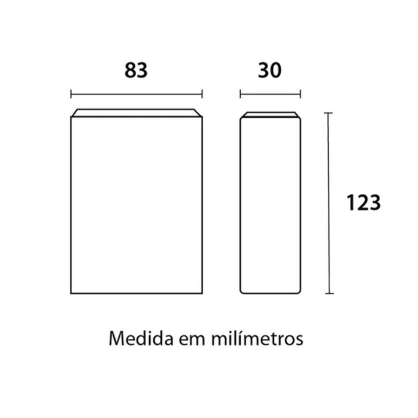 - Dimensões: 123 x 83 x 30 mm;