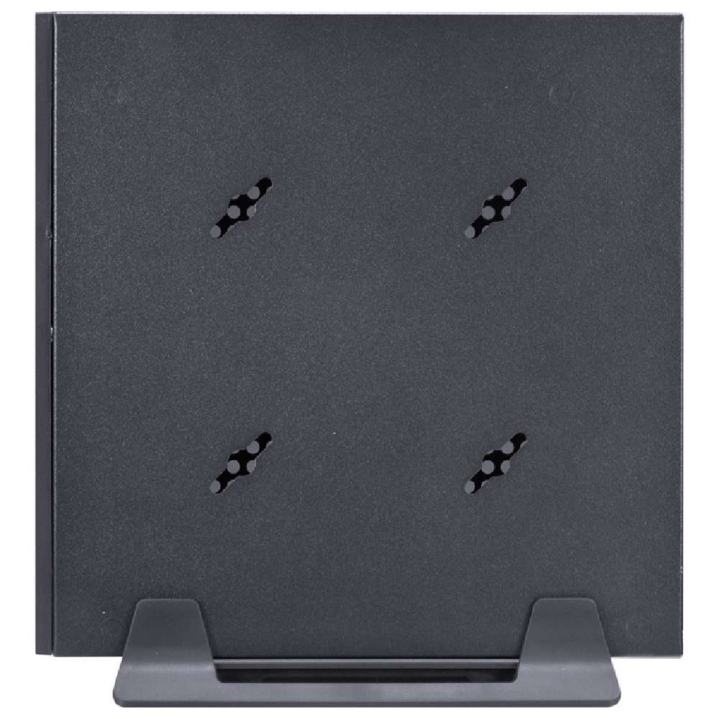Devido suas pequenas dimensões (Larg. 5,5cm x Alt. 19cm e Comp. 19cm) e com o Adaptador Vesa (incluso), é possível fixá-lo atrás de televisores ou monitores, além disso com o suporte do gabinete (incluso) é possível deixá-lo na posição vertical, em ambos casos, ocupando o mínimo de espaço no seu ambiente de trabalho.
