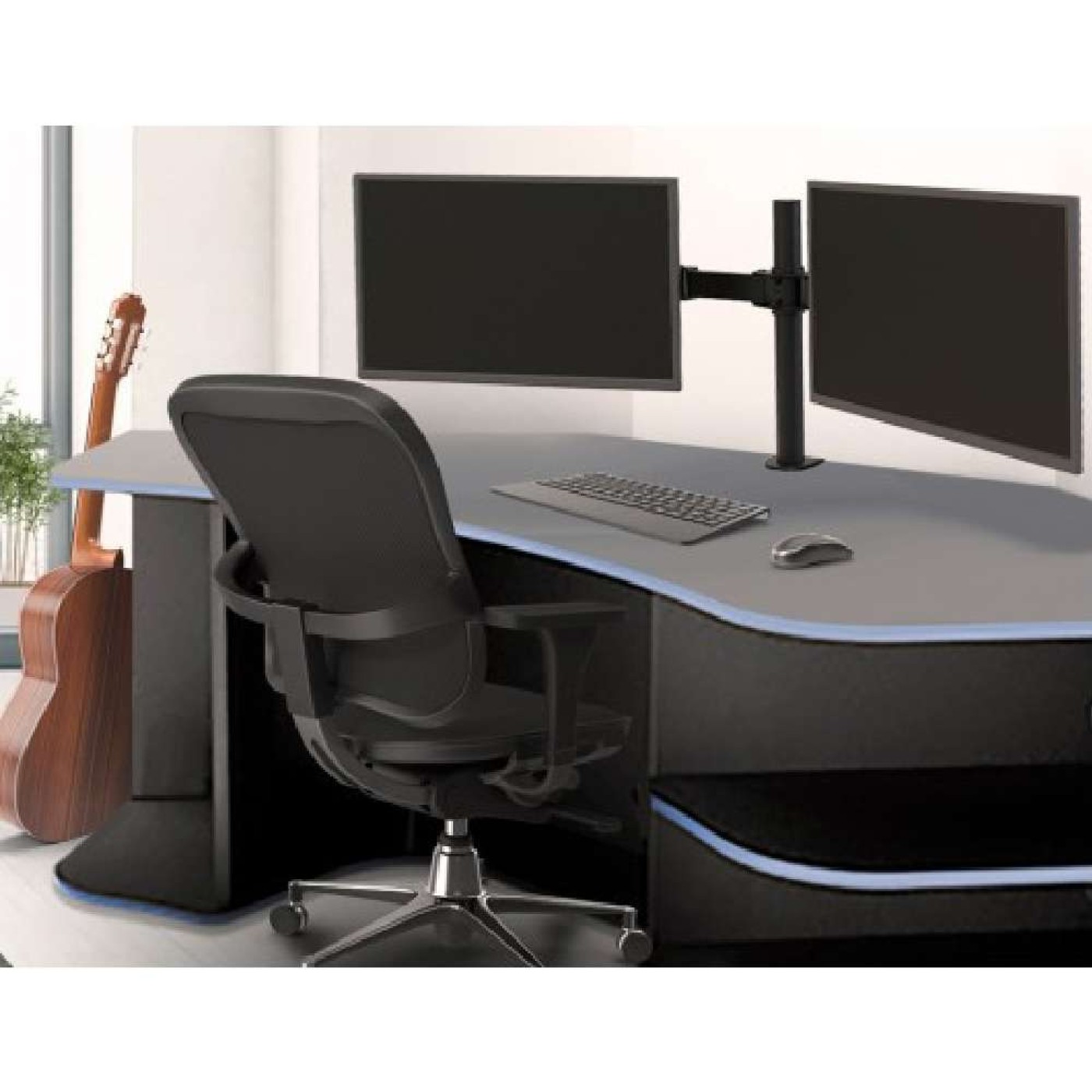 O suporte multiarticulado de mesa modelo F50X2, possui coluna vertical rígida de 35cm para o ajuste de altura dos braços articulados. Para total conforto e ergonomia, permite articular os braços a ainda girar e inclinar as telas individualmente. Compatível com monitores e TVs LCD, LED de 14" a 27" com até 7,5kg e que permitam fixação conforme os padrões de fixação VESA 75x75 e VESA 100x100mm, presentes na traseira das telas.