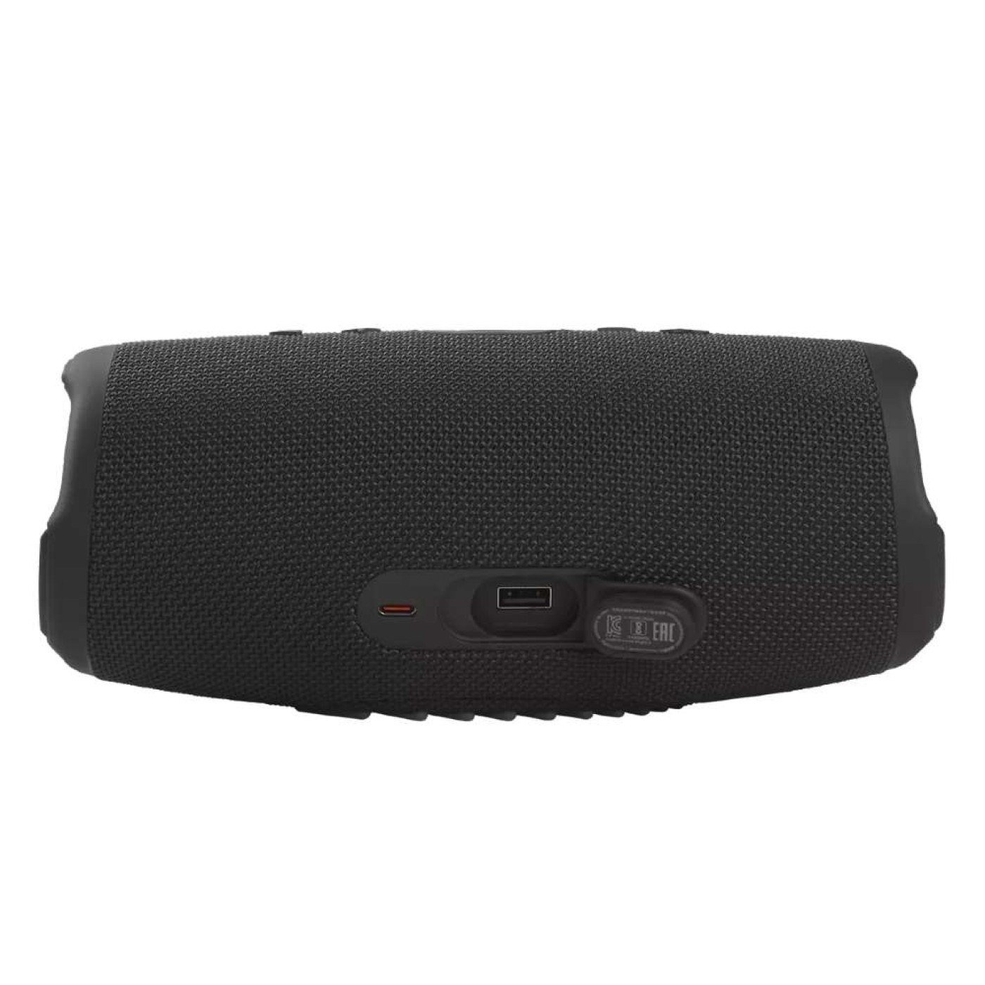 » Leve o incrível poder do JBL Pro Sound com você. A JBL Charge 5 tem um driver de longa excursão otimizado, um tweeter separado e dois radiadores de graves JBL, todos fornecendo áudio nítido e claro. Tenha aquele som de ambientes grandes, mesmo ao ar livre.