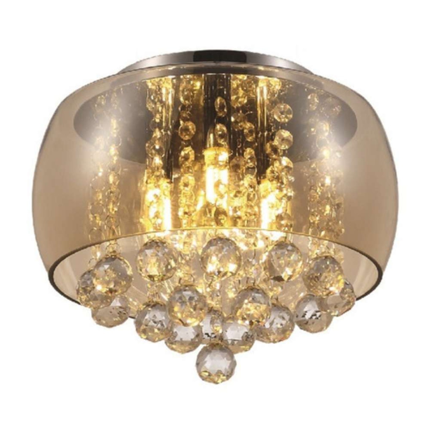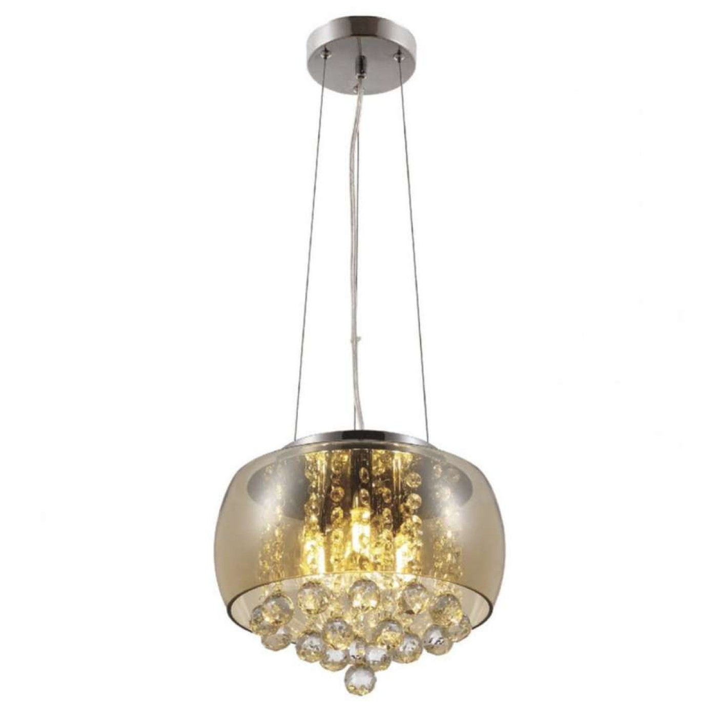 Luminária estilo moderno tamanho médio com cúpula de vidro cor âmbar, pingentes de cristal k9, pode ser instalado como plafon ou pendente.