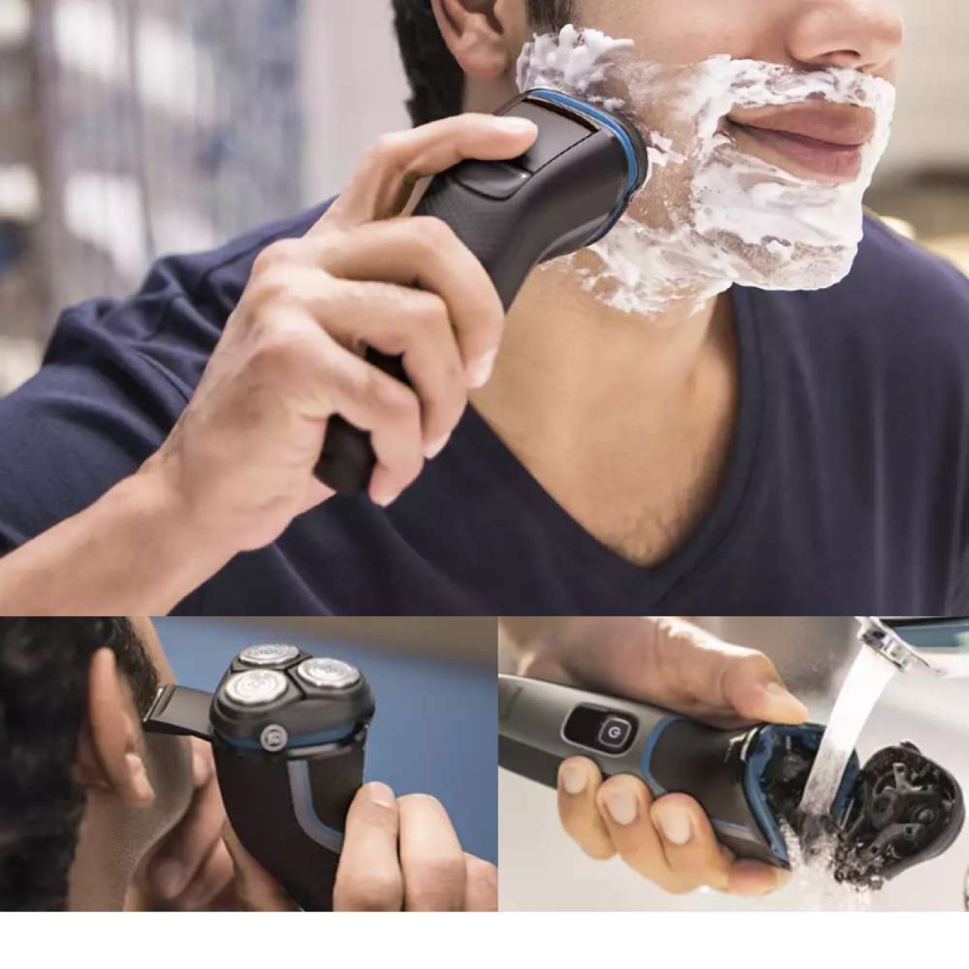Escolha entre um prático barbear a seco, ou um confortável barbear úmido com gel ou espuma, até mesmo debaixo do chuveiro