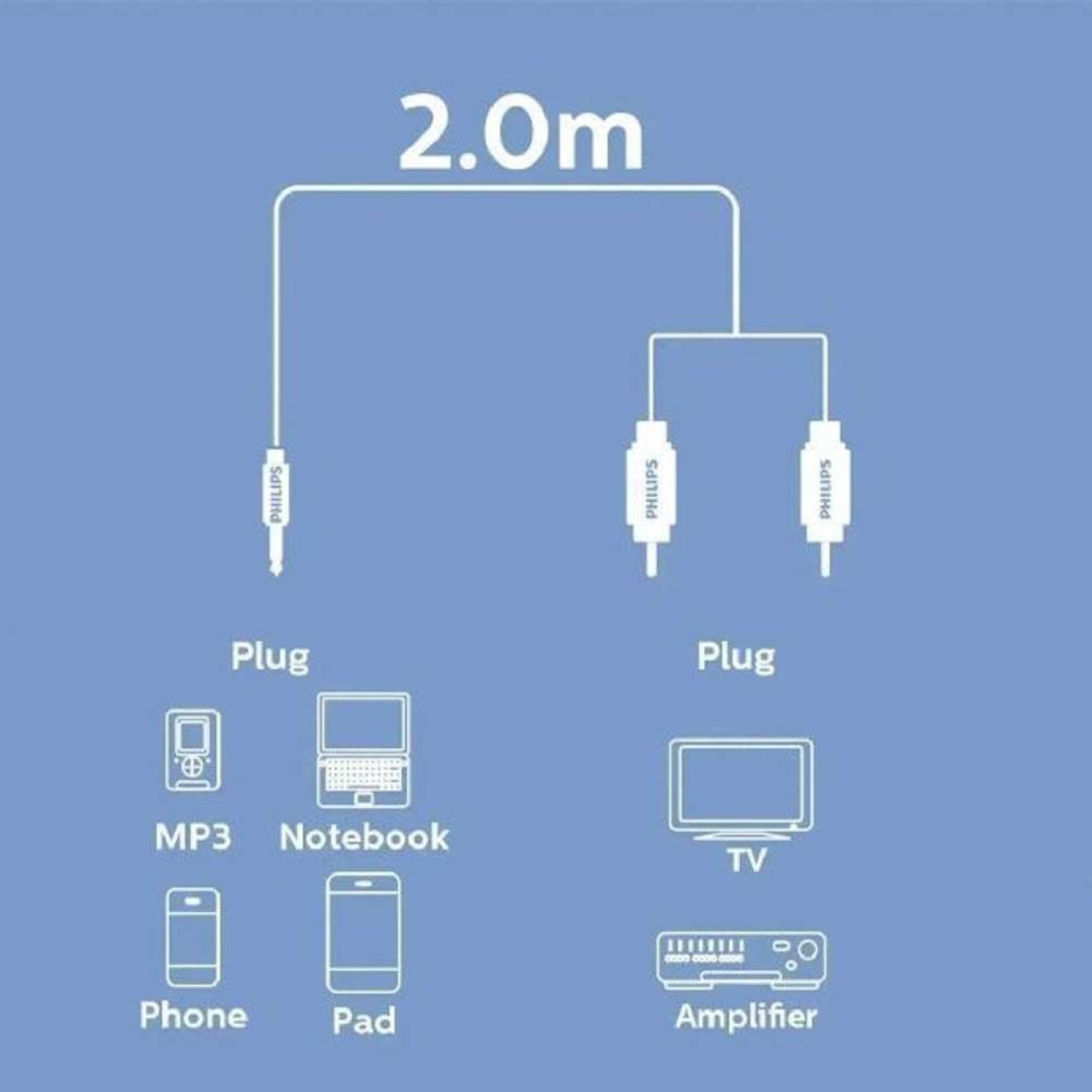 Produzido com materiais de alta qualidade que garantem melhor transmissão de áudio, o cabo Phlips proporciona excelente qualidade sonora.