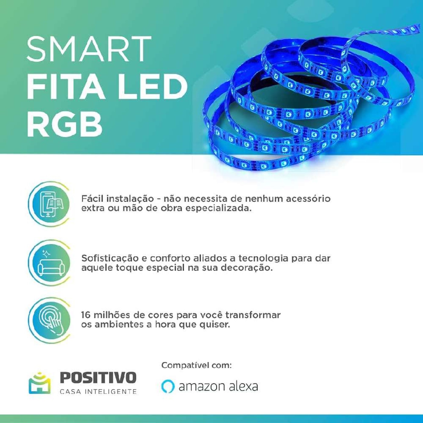 Smart Fita Led RGB Wi-Fi 3M 10W/m Positivo Casa Inteligente