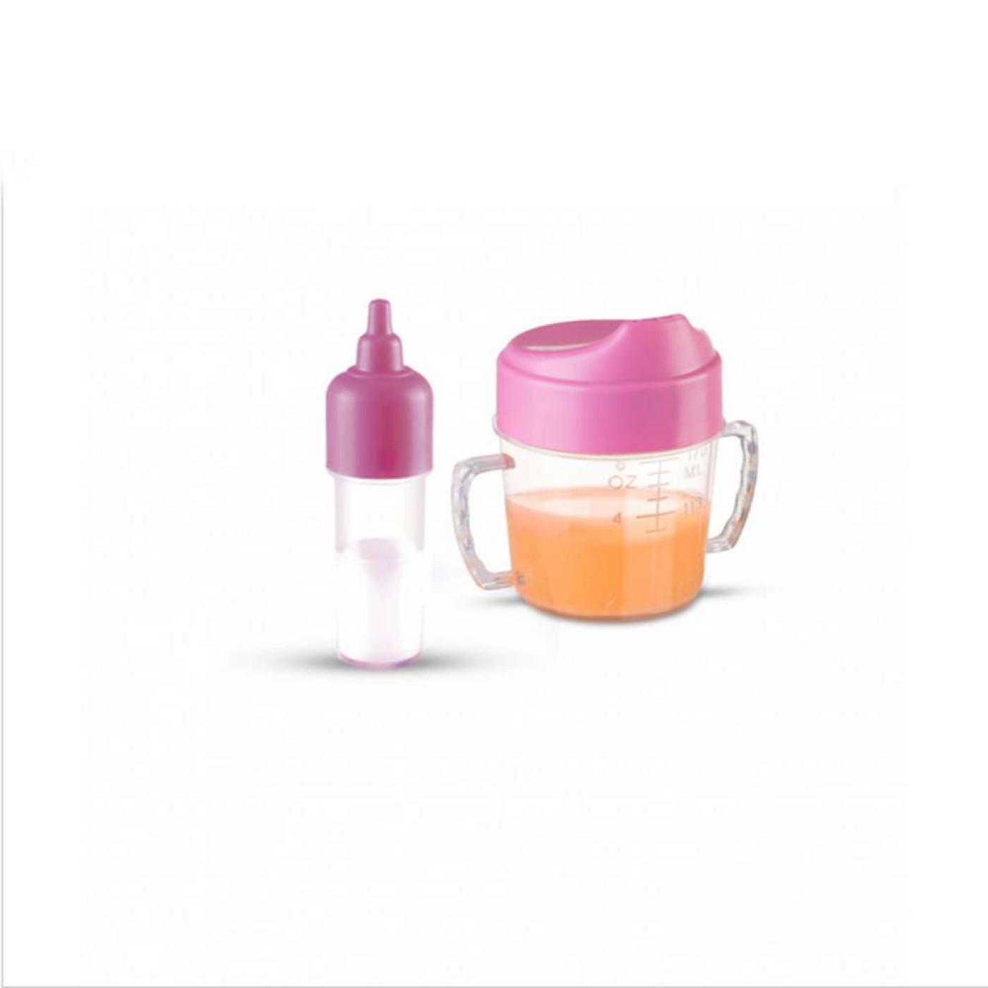 E esse kit tem uma mágica, você virando as mamadeiras para baixo os líquidos somem.