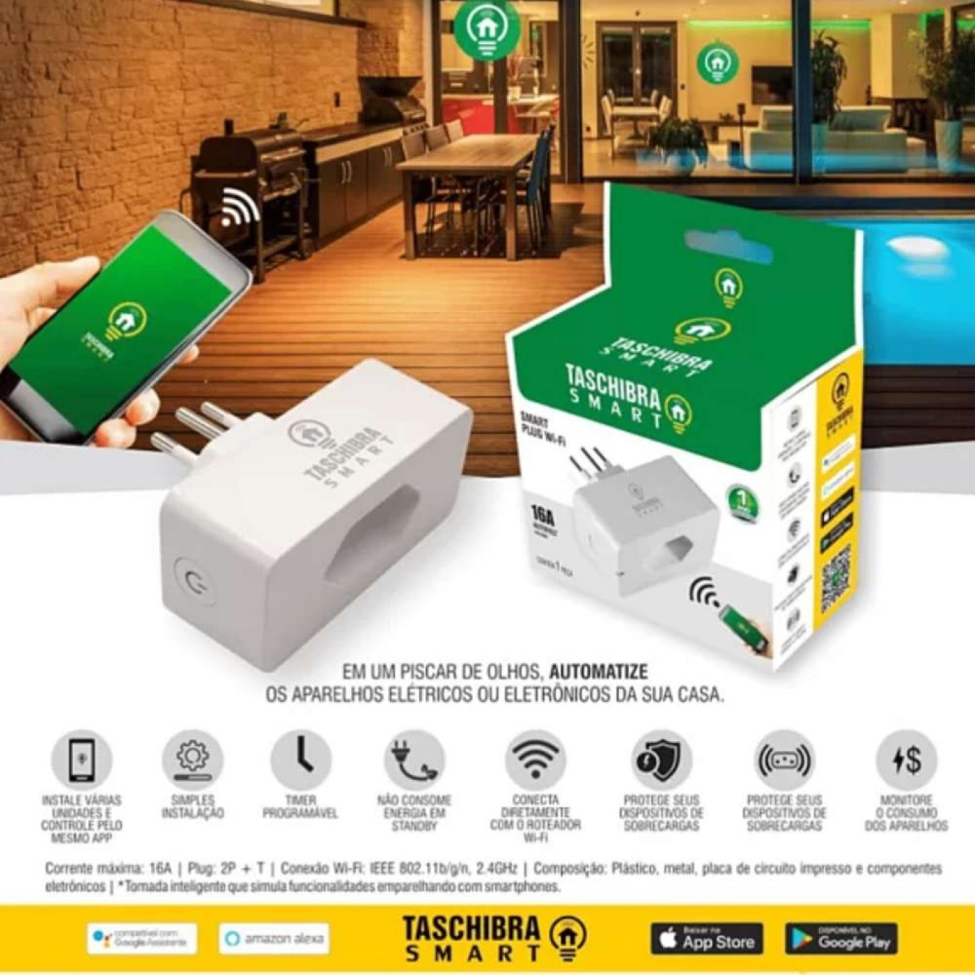 » O Smart Plug Wi-Fi Taschibra é um dispositivo inteligente, desenvolvido com a mais recente tecnologia Smart, permite que você ligue automaticamente seus aparelhos eletrônicos de onde estiver. Muito fácil de usar, basta plugar e começar a utilizar. Possui monitoramento de consumo em tempo real e proteção de seus dispositivos contra sobrecargas. Crie e salve as suas preferências através do aplicativo Taschibra Smart.